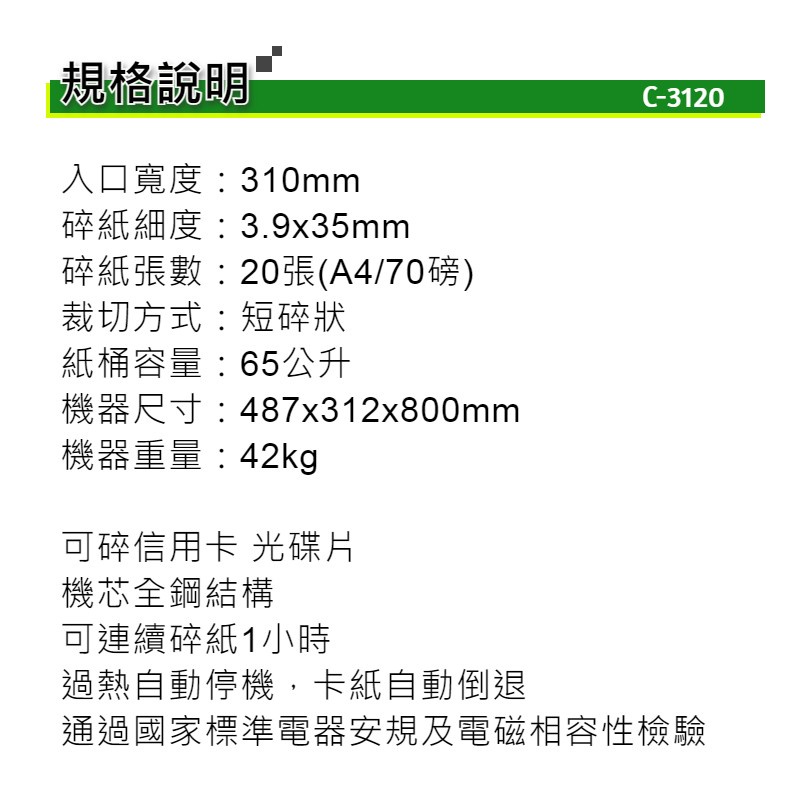 Resun 電動碎紙機 (A3) 短碎狀 可碎信用卡 光碟片 / 台 C-3120