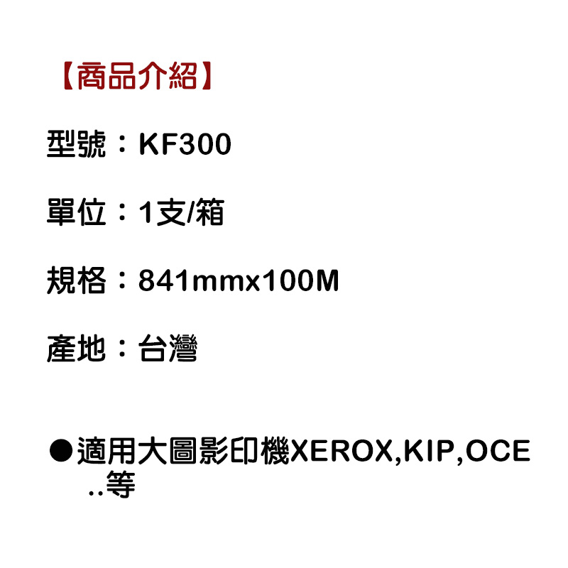 Kuanyo 國產 大圖影印機專用膠片-製圖膠片 841mmx100M 1支/盒 KF300-841mm-300-1