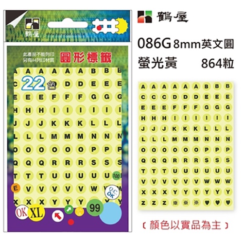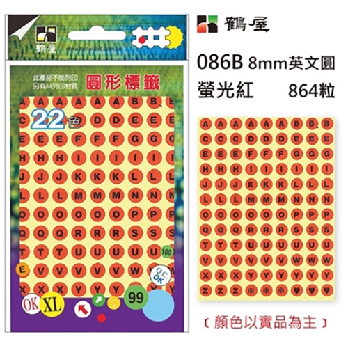 鶴屋 Φ8mm圓形標籤 英文圓 8色 864粒 / 包 086