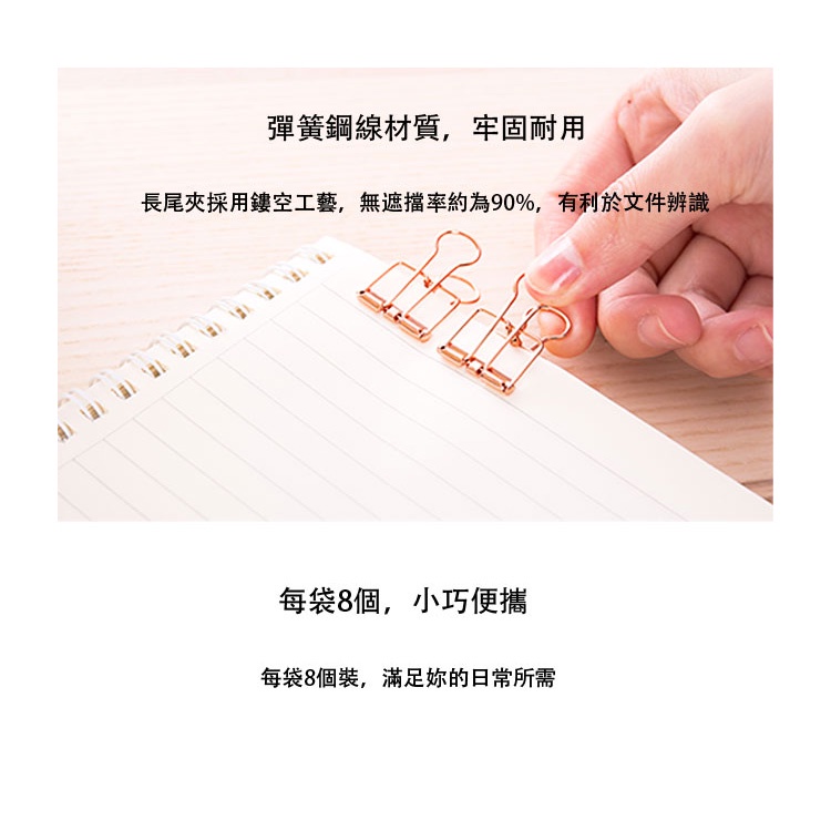 得力 Deli 玫瑰金簍空長尾夾 19mm/32mm 8支入/6支入 /包 9414/9415