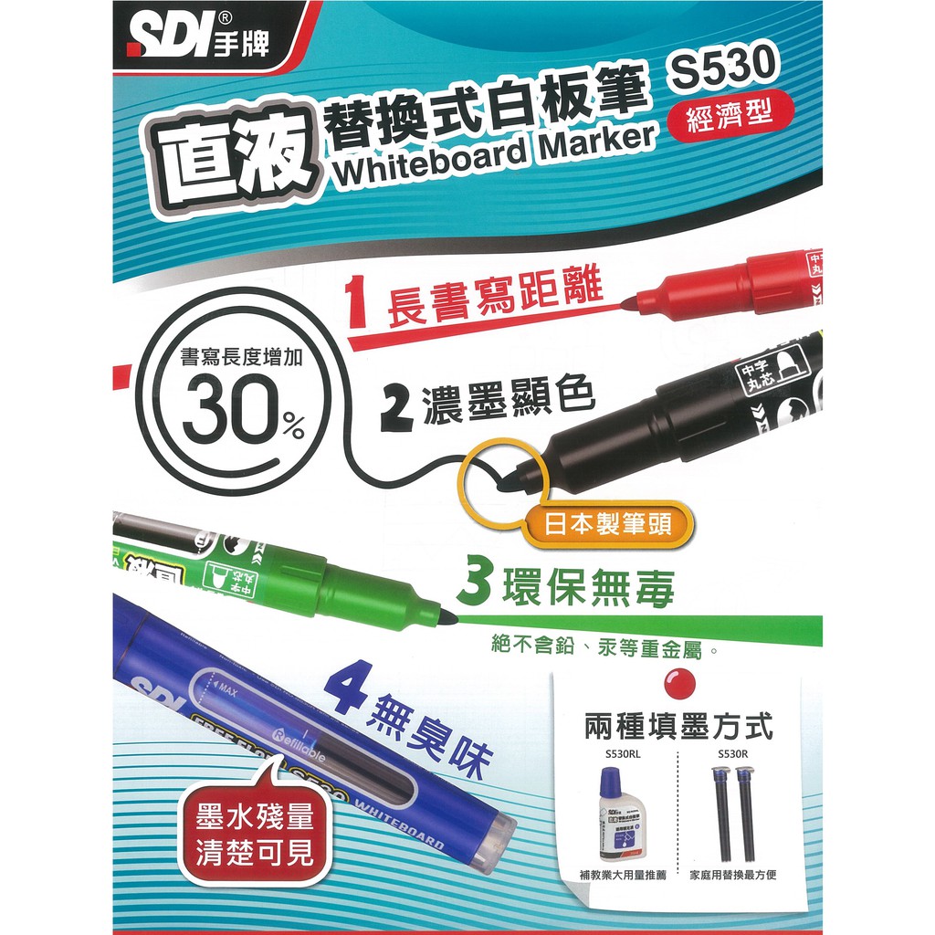 SDI 手牌 S530VP 直液替換式 白板筆 專用墨水匣 1+1超值包 / 組