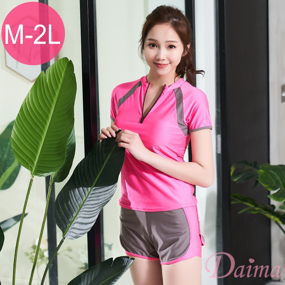 Daima黛瑪 套裝泳衣 韓國泳衣 甜美 三件式泳裝 深V拉鍊運動款泳衣 修身 防走光 海邊 玩水 保守 B191078