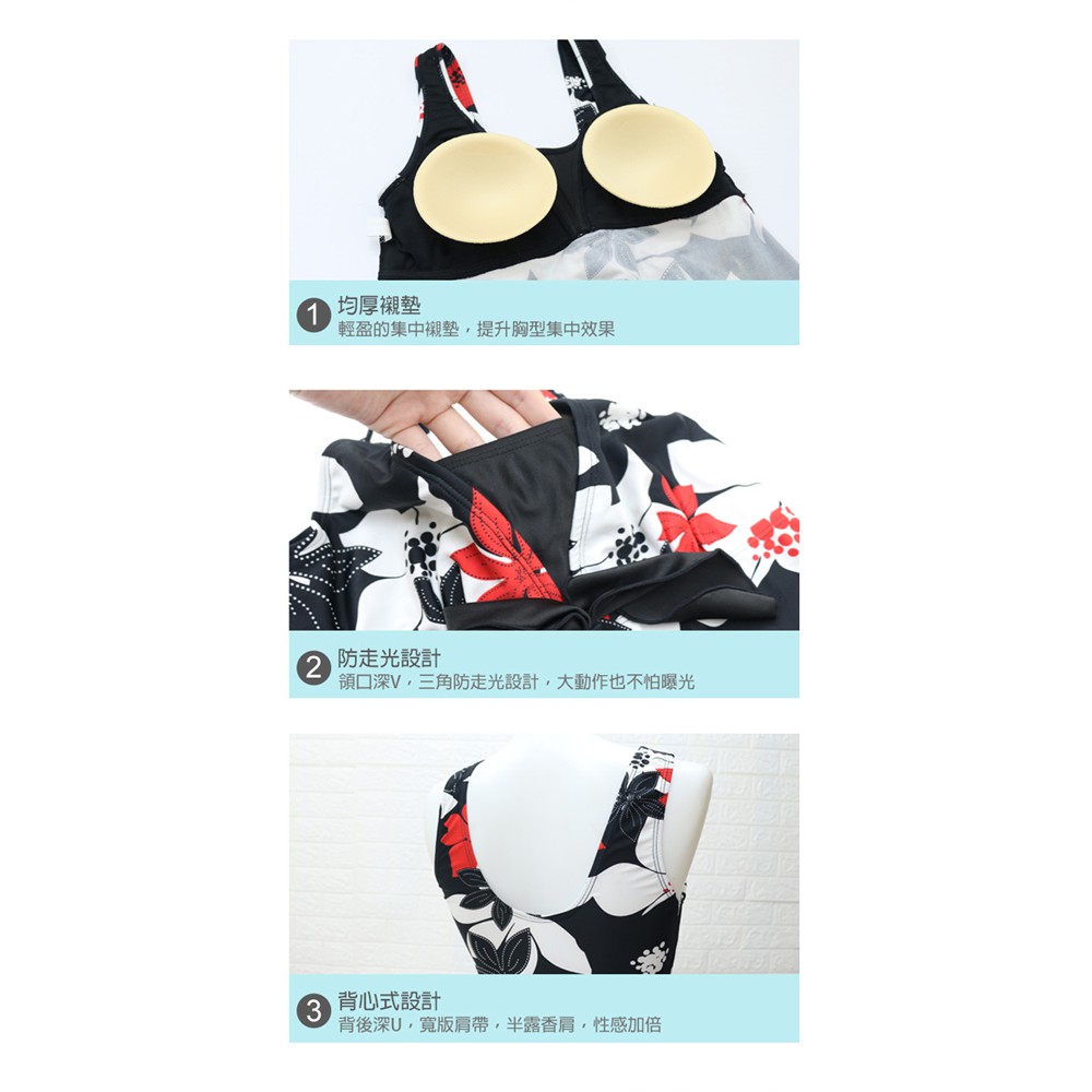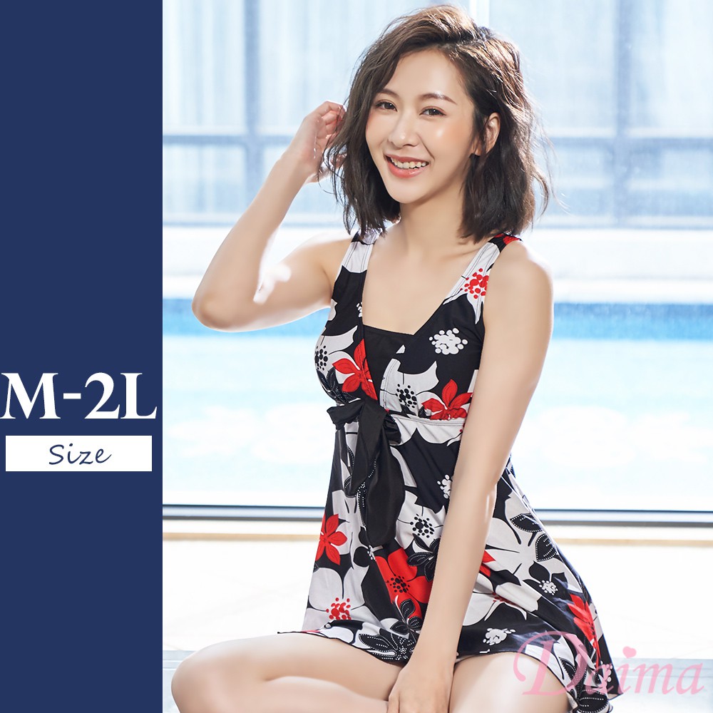 Daima黛瑪 女泳裝 夏日風情 兩件式泳衣 海邊 泡水 玩水 游泳 保守 花朵 M-2L 黑色 B191100