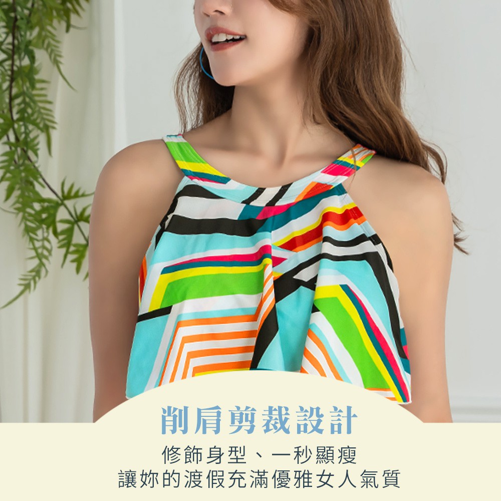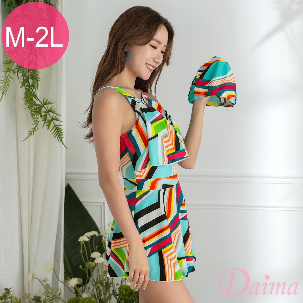 Daima黛瑪 女泳裝 大尺碼 M-2L【彩虹妞兒】連身露背泳衣 彩色 繞頸 時尚 現貨 D201226