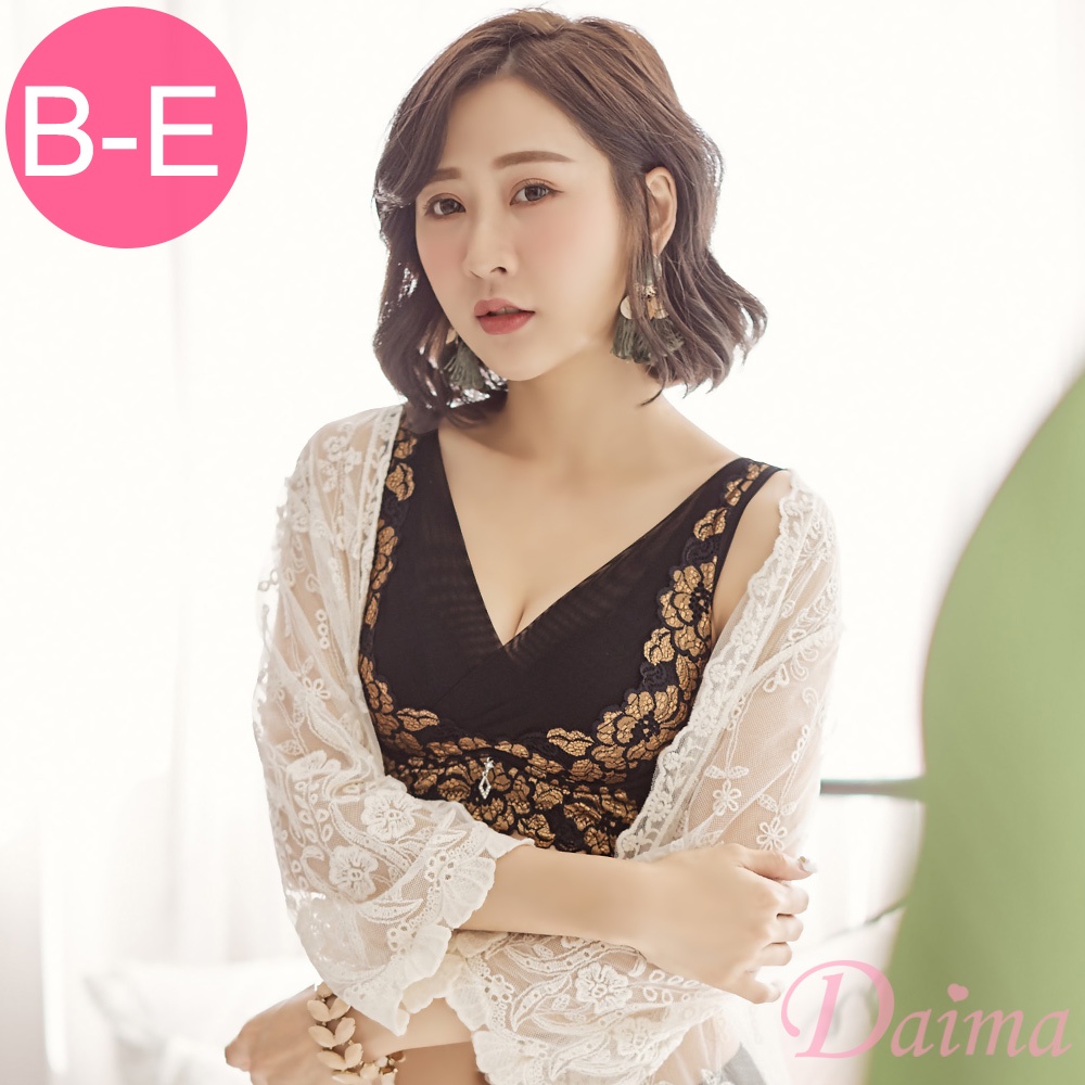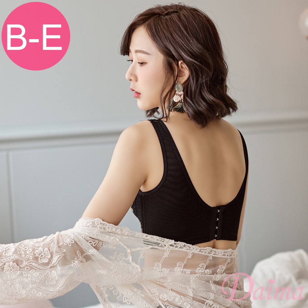 Daima黛瑪 無鋼圈 黑色 大罩杯 BCDE罩【花玥秘意】零壓力集中托高機能背心式內衣-2472