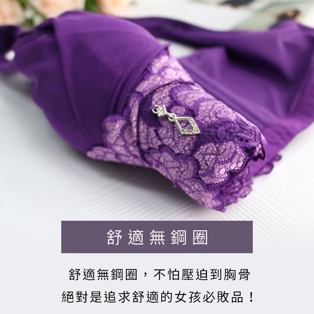 Daima黛瑪 無鋼圈內衣 大罩杯 BCDE罩【花玥秘意】零壓力集中托高機能背心式內衣 寶藍色 2472