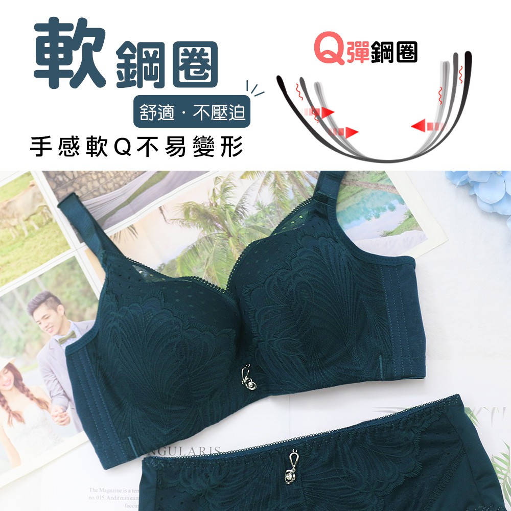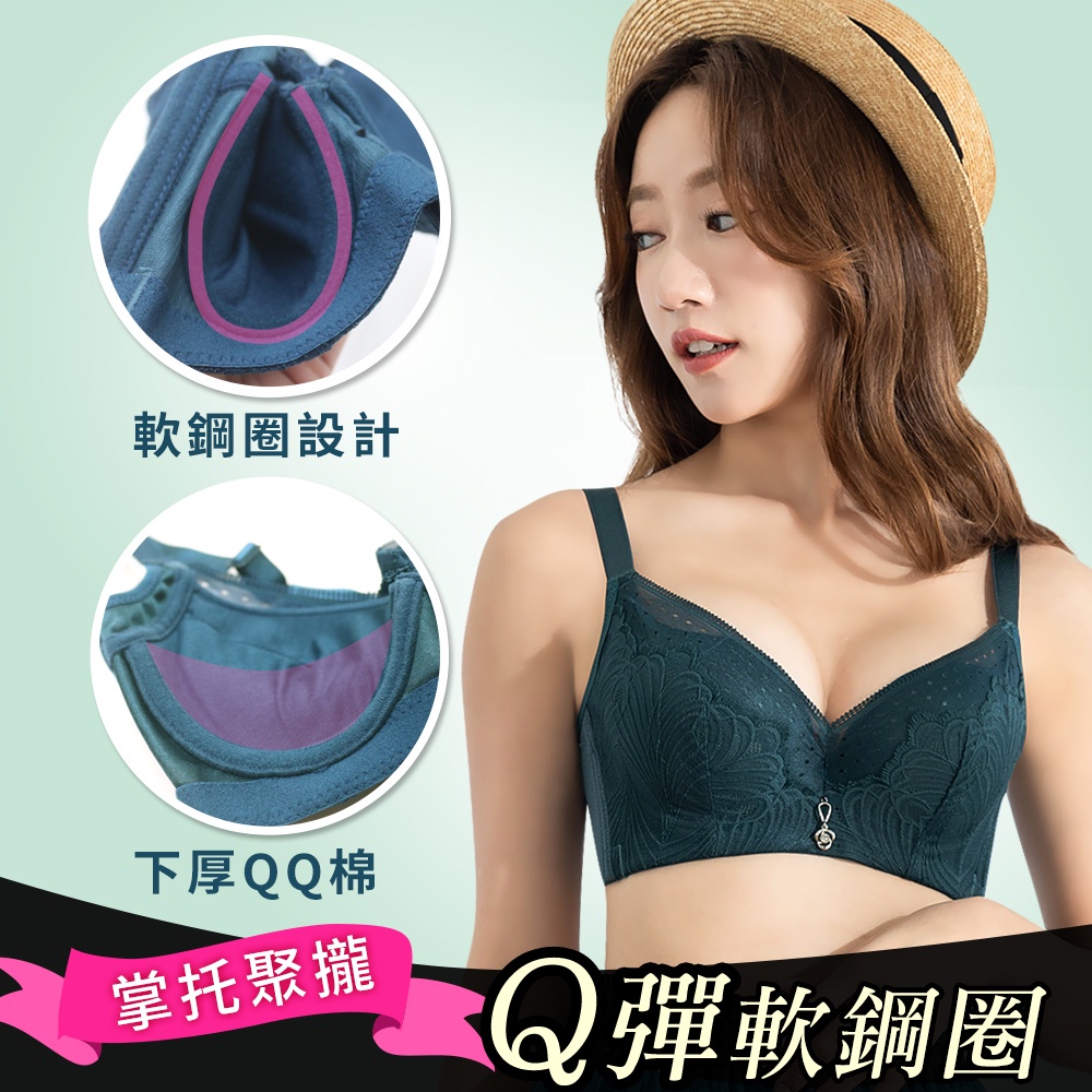 Daima黛瑪 軟鋼圈 綠色 B-E 蕾絲內衣 舒適集中爆乳收副乳法式內衣-3072