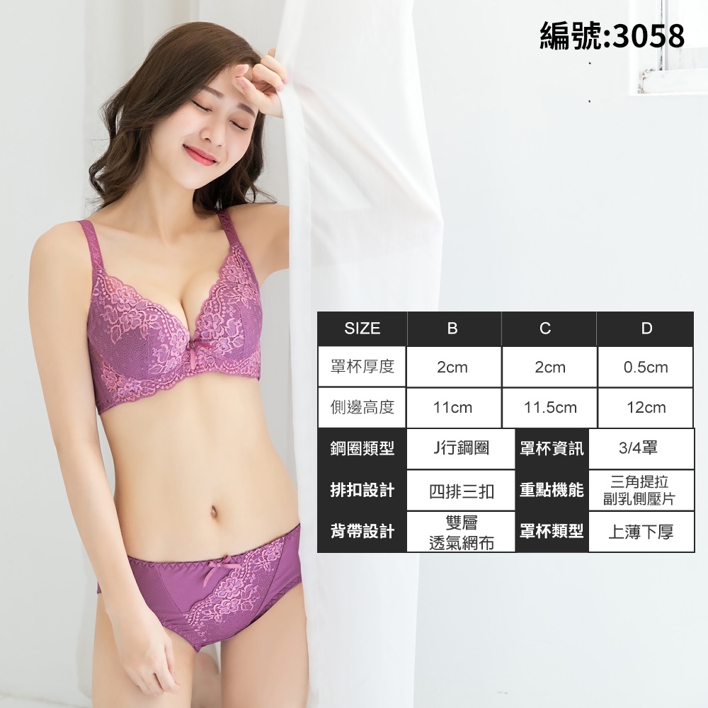 Daima黛瑪 蕾絲內衣 B-D 兩色可選 J型鋼圈 爆乳雙色立體提托 3058