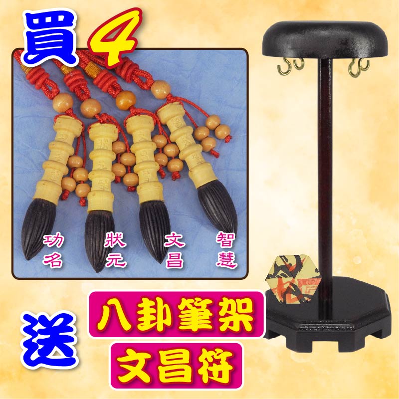 【吉祥開運坊】文昌系列【提升考運 金榜題名 四綠文昌筆組合 狀元筆 含筆架 文昌符】開光 擇日