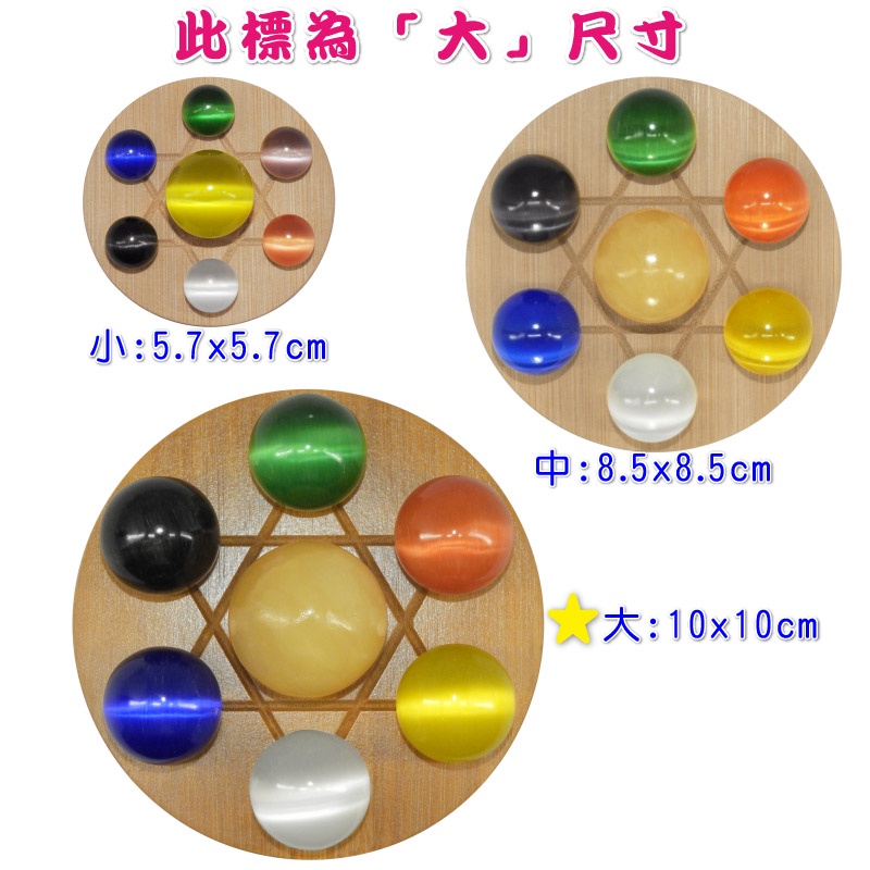 【吉祥開運坊】【孟宗竹底盤 貓眼石五行水晶七星陣 開運 招財 用配聚寶盆使用】淨化 擇日