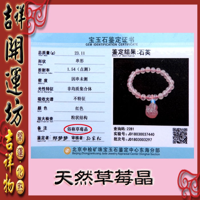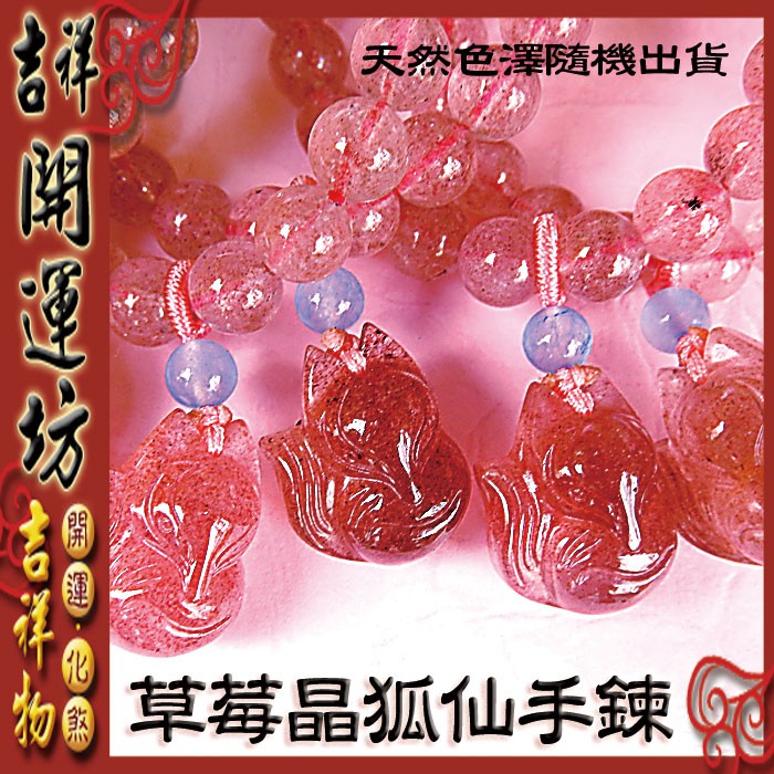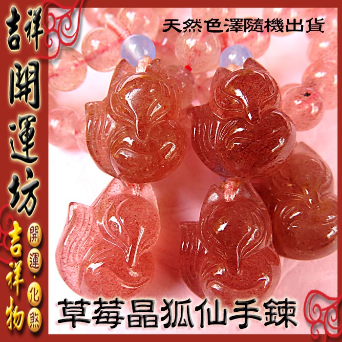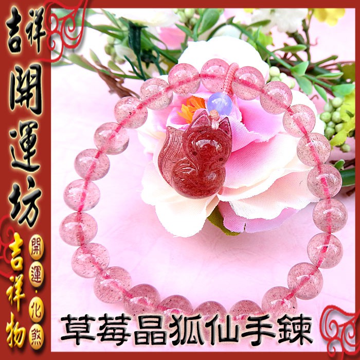 【吉祥開運坊】手鍊系列【開運 增桃花 人緣 草莓晶狐仙手鍊 彈性 】開光 淨化