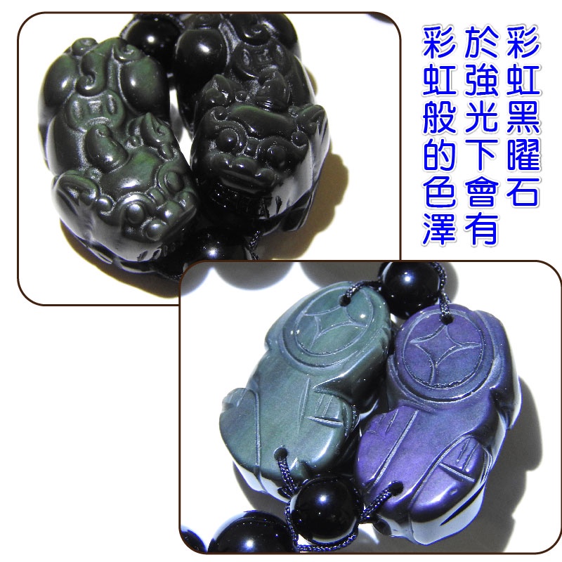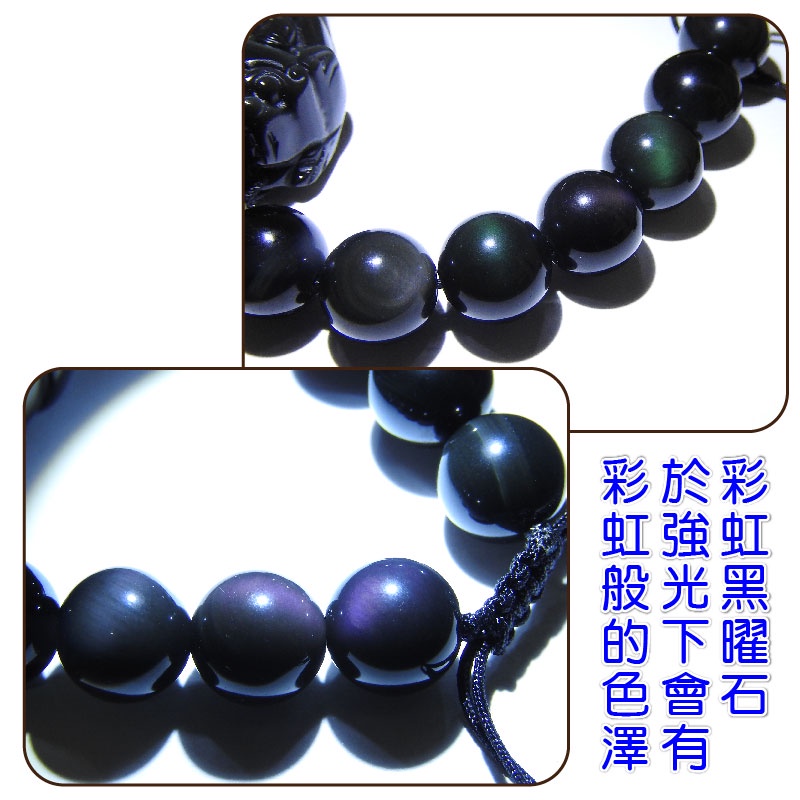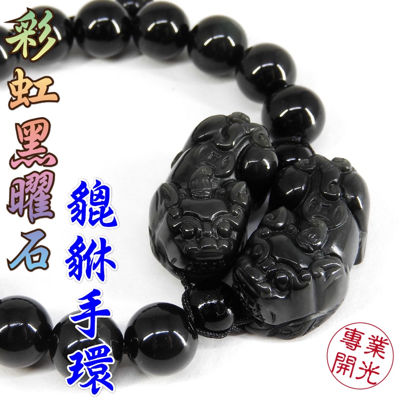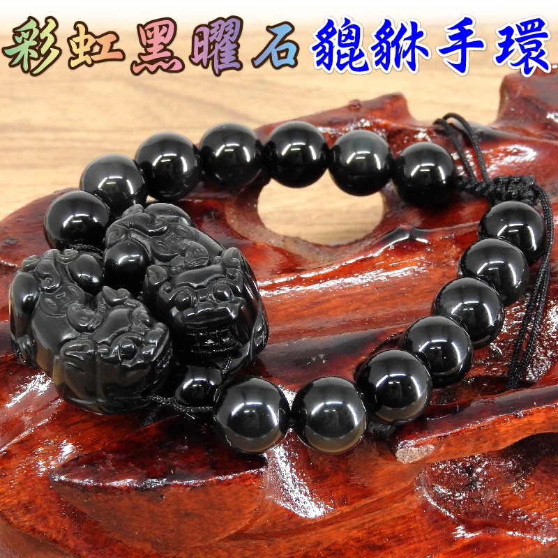 【吉祥開運坊】貔貅手鍊【招財貔貅彩虹黑曜石貔貅 含彩虹黑曜石珠鍊 有尺寸可選擇】開光 擇日