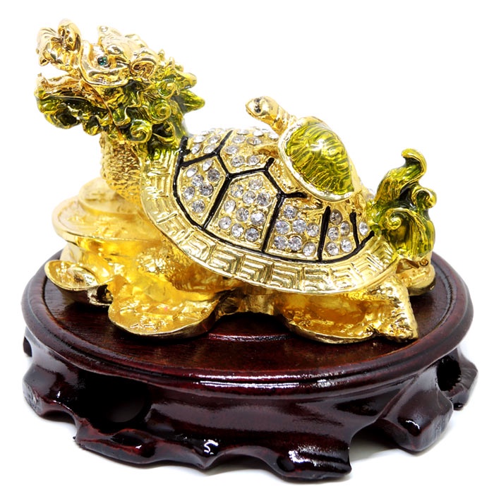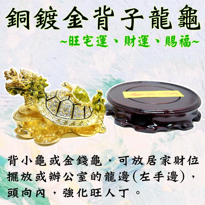 【吉祥開運坊】龍龜系列【招財 防小人 銅鍍金龍龜 大型 附實木座】開光加持 擇日