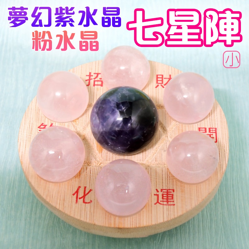 【吉祥開運坊】【增人緣 貴人 智慧 桃花 紫晶+粉晶七星陣 小型 附孟宗竹底盤】淨化 擇日