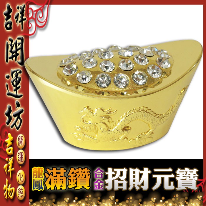 【吉祥開運坊】聚寶盆系列【黃金萬兩 銅合金滿鑽元寶 大型 滿鑽 滿賺 櫃台 財位】開光