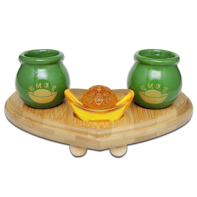 【吉祥開運坊】供養貔貅 神獸 金雞專用杯【供奉紫南宮金雞 供奉貔貅 專用陶瓷供杯 供杯2個 含孟宗竹底座 特贈元寶】
