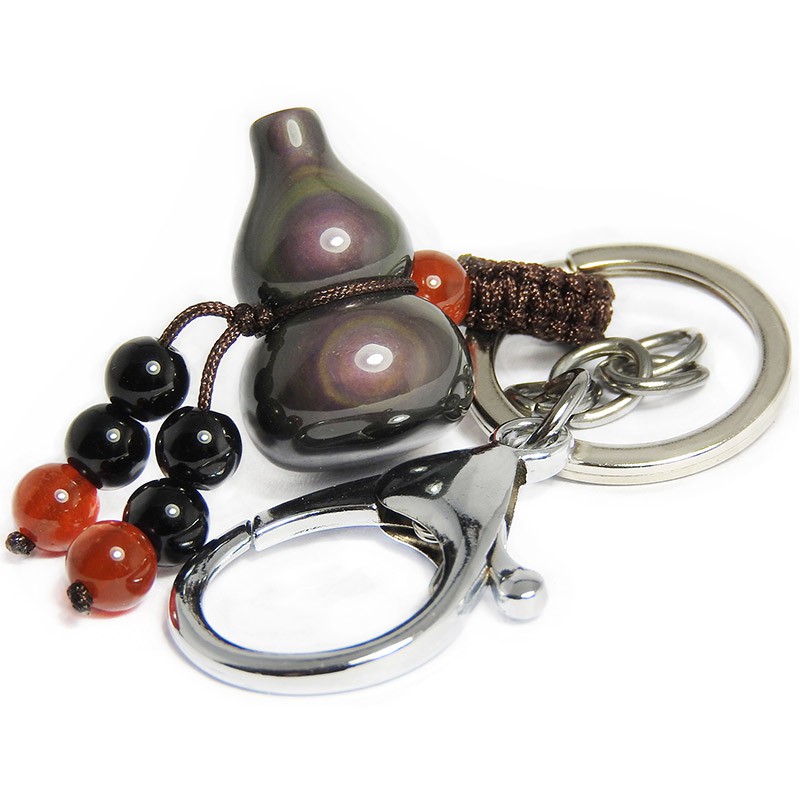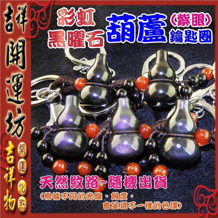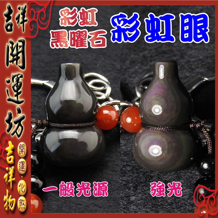 【吉祥開運坊】葫蘆系列【保平安 辟邪 防小人 帶眼彩虹黑曜石葫蘆 鑰匙圈飾】開光