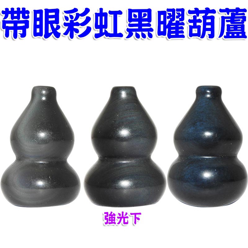 【吉祥開運坊】【防小人 鎮宅 帶眼彩虹黑曜石葫蘆6cm 附實木座】開光 擇日