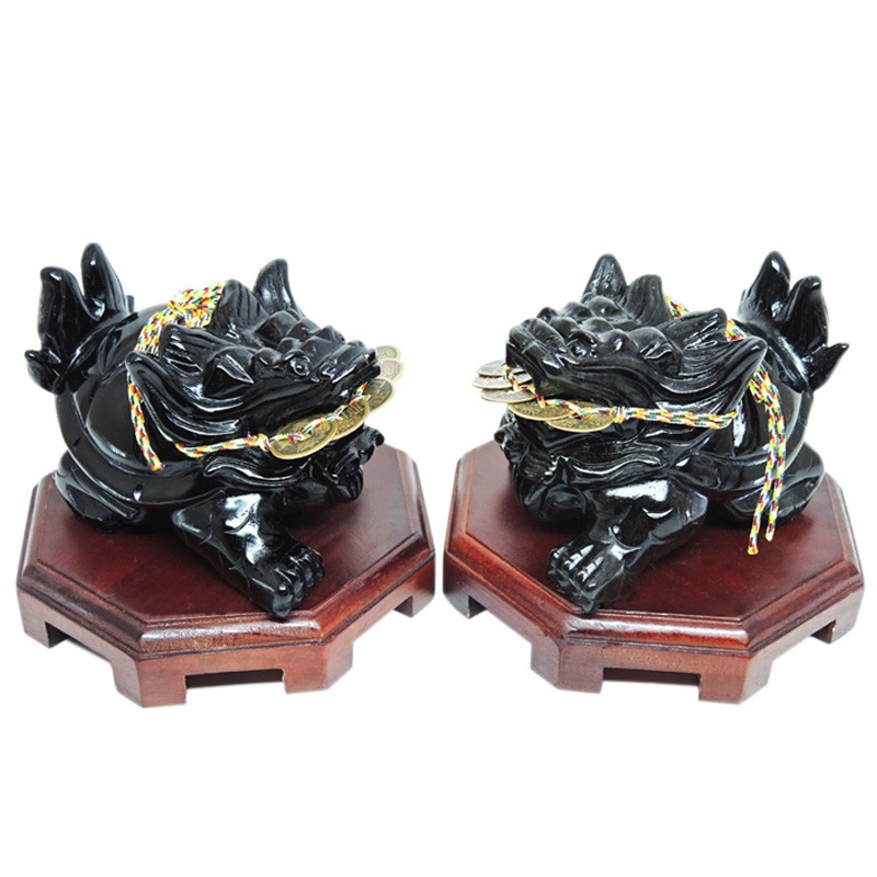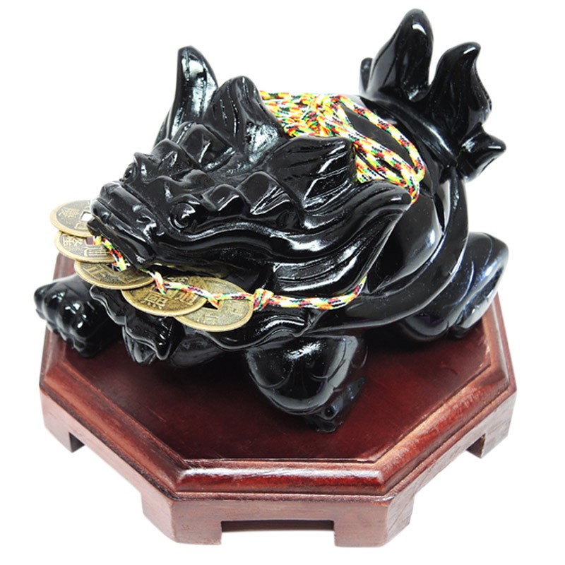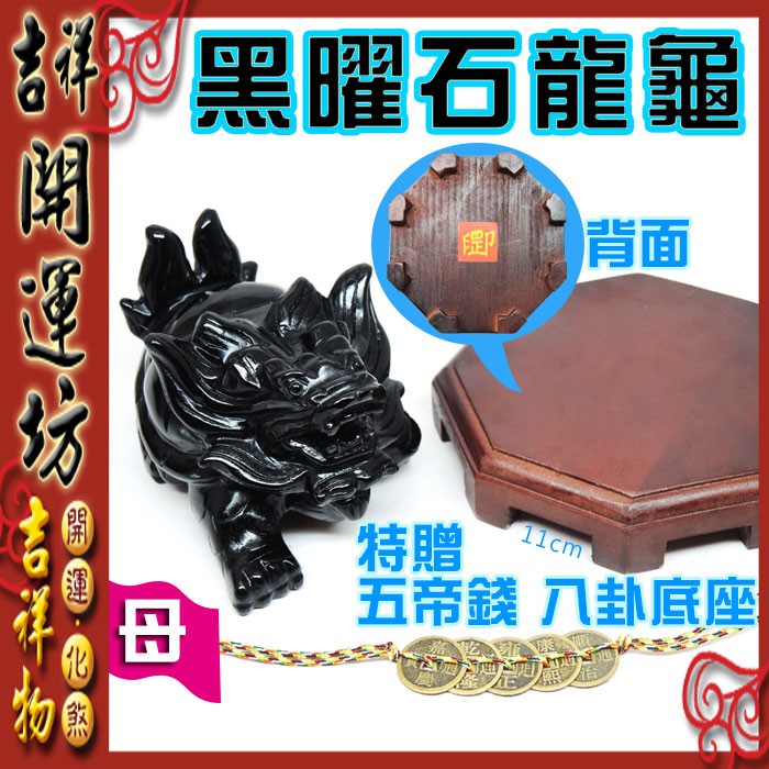 【吉祥開運坊】龍龜系列【招財/化煞 防小人 戰鬥黑曜石龍龜 戰鬥龍龜9cm 附木座及五帝錢】開光 擇日