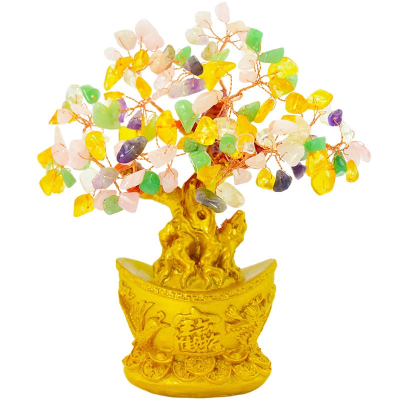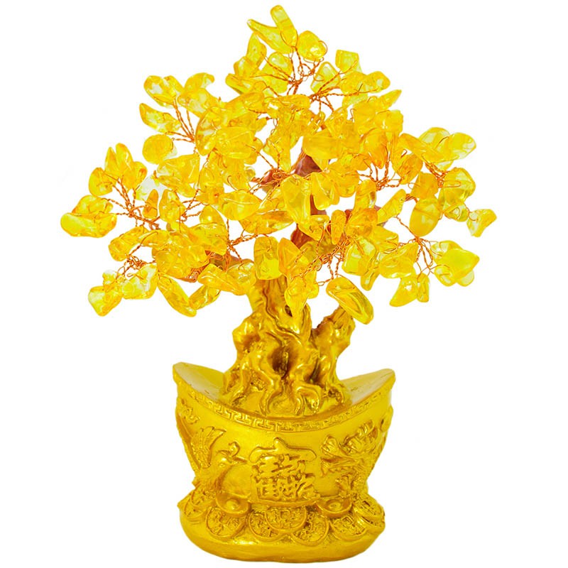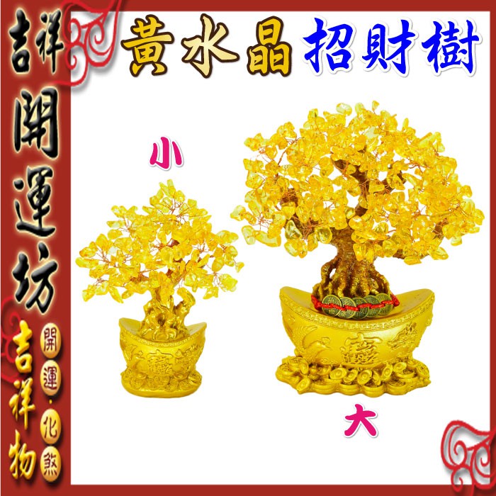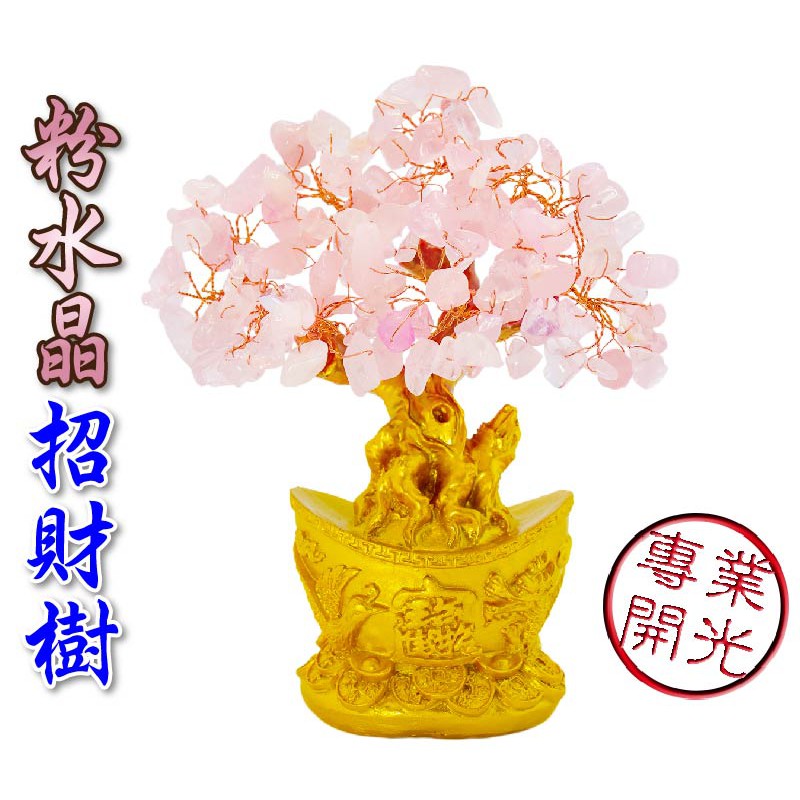 【吉祥開運坊】招財樹系列【招財進寶龍鳳元寶招財樹 天然水晶招財樹 金底 發財樹 小型】 開光