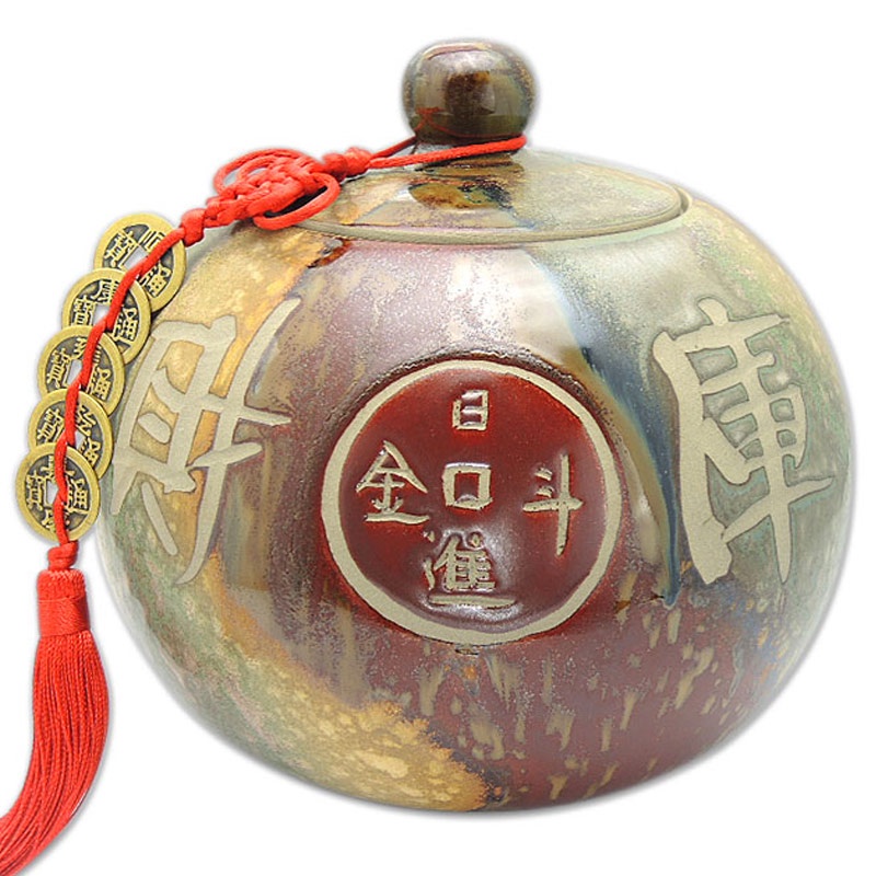 【吉祥開運坊】聚寶盆系列【招財財庫聚寶盆 三彩台製陶瓷聚寶盆 附五色石 元寶 招財符】開光 擇日