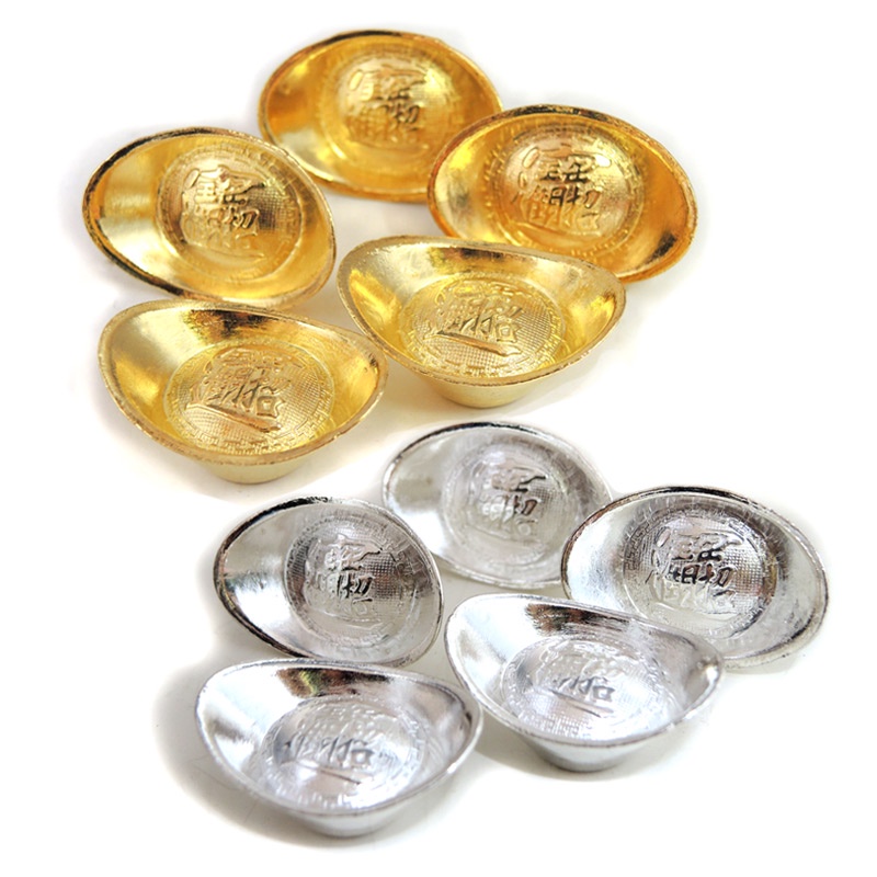 【吉祥開運坊】招財元寶【招財合金元寶3cm 一組10顆 金銀元寶 適合放聚寶盆】淨化 擇日