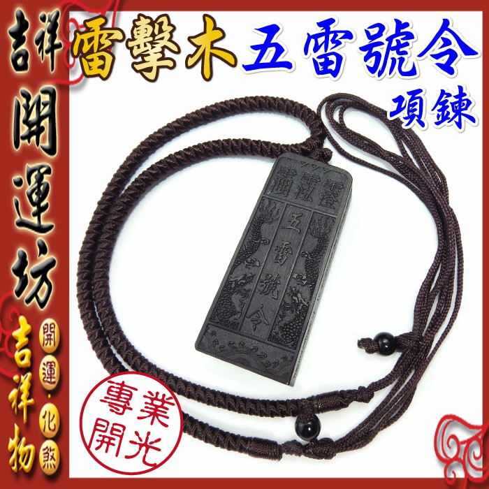 【吉祥開運坊】辟邪/保平安【鬼月必備品 擋陰煞/辟邪保平安 雷擊木 黑檀木五雷號令 五雷令項鍊】開光