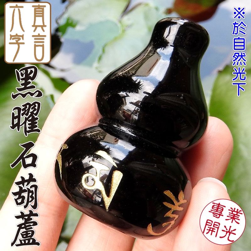 【吉祥開運坊】【防小人 保平安 鎮宅 六字真言黑曜石葫蘆 附實木座】開光 擇日