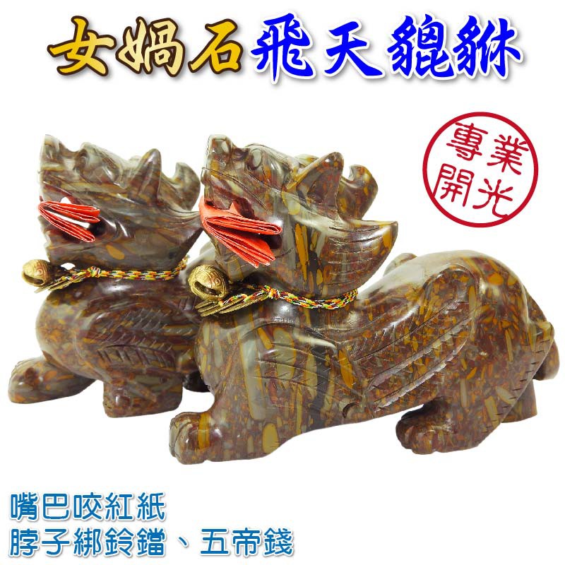 【吉祥開運坊】招財女媧石貔貅【女媧石飛天貔貅 1對 大尺寸約15cm 贈五帝錢 銅鈴 】開光