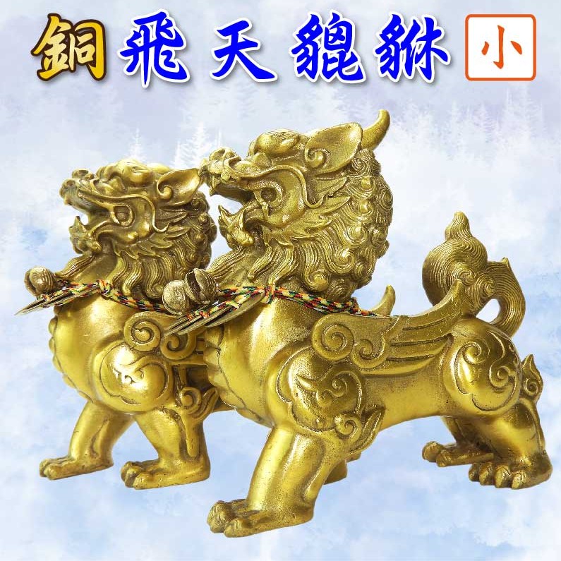 【吉祥開運坊】貔貅系列【財位 招財飛天銅貔貅1對 中大型 贈五帝錢及銅鈴 】開光