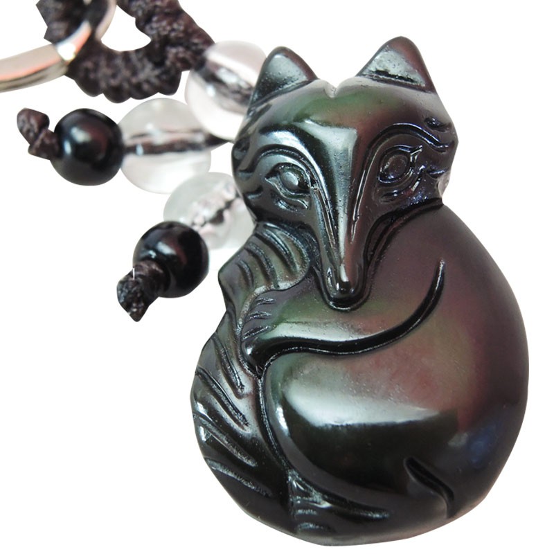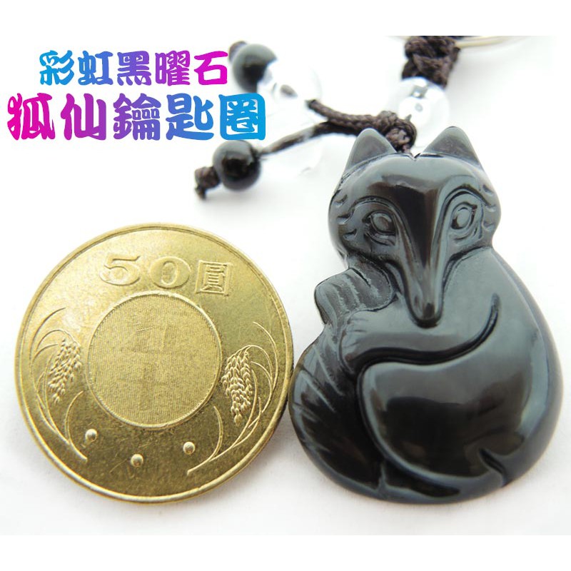 【吉祥開運坊】【防小人 爛桃花 彩虹黑曜石狐仙 黑曜石狐狸鑰匙圈 1pcs】開光淨化