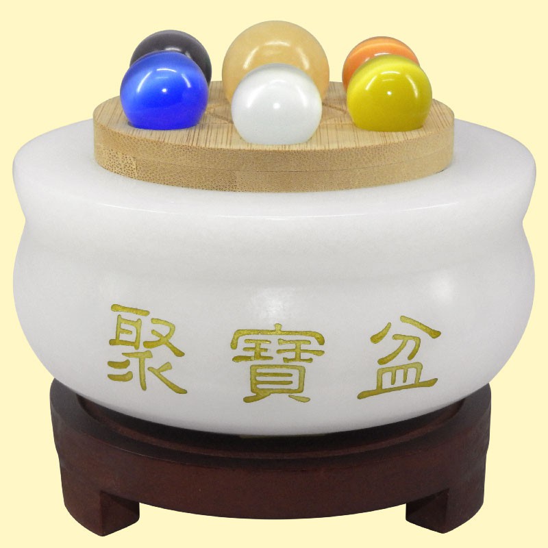 【吉祥開運坊】七星聚寶盆【七星白玉石聚寶盆中型 附七星陣 五色石 五帝錢 底座】開光 擇日