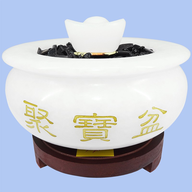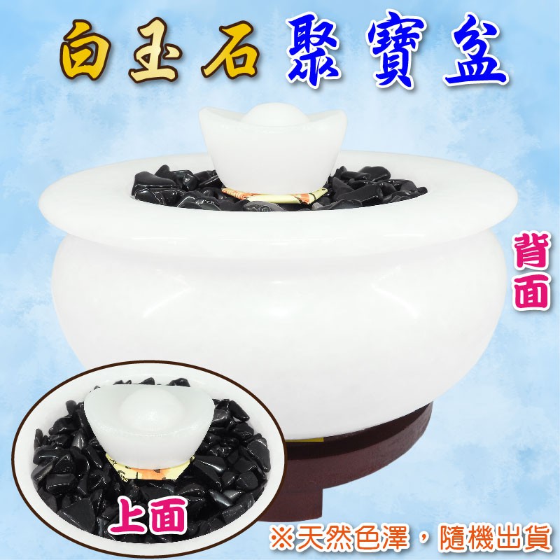 【吉祥開運坊】聚寶盆系列【白玉石聚寶盆大型 附五色石 五帝錢 元寶 招財符】開光 擇日