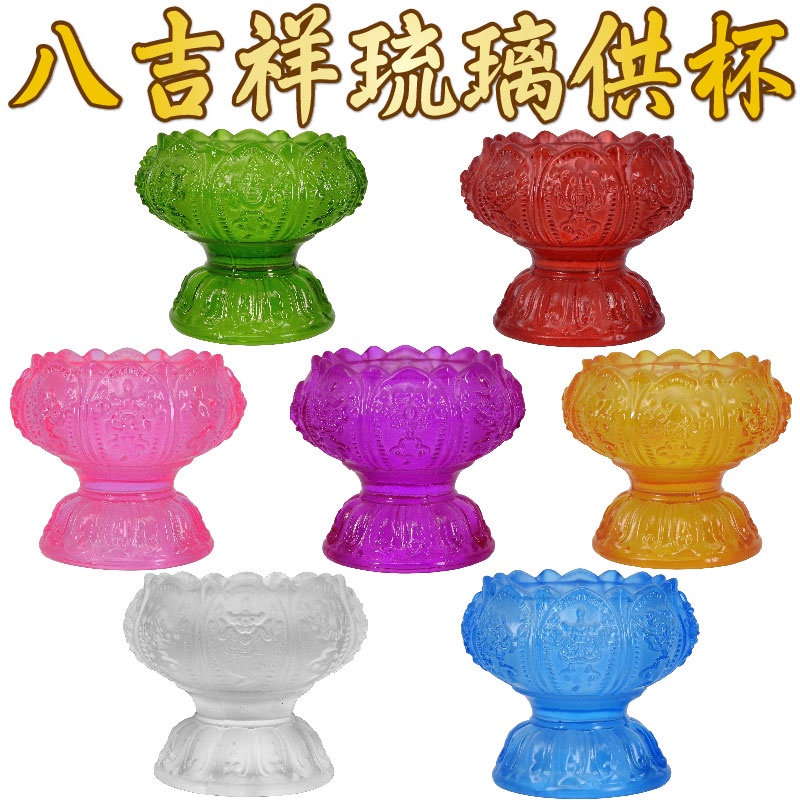 【吉祥開運坊】供養貔貅 金雞專用供杯【八吉祥高腳供杯 八吉祥琉璃供杯】多色可選一