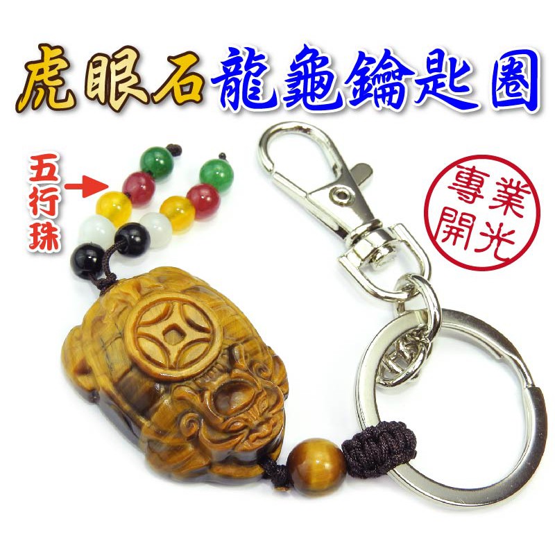 【吉祥開運坊】龍龜系列【招財 防小人 虎眼石龍龜 背部刻古錢 鑰匙圈(扣)】開光 擇日