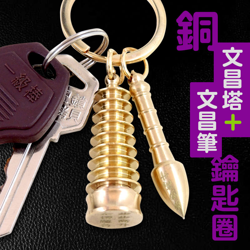 【吉祥開運坊】文昌系列【金榜題名 步步高升 銅製文昌筆&文昌塔鑰匙圈】開光 擇日