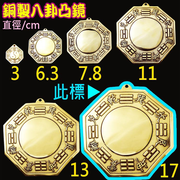 【吉祥開運坊】八卦鏡【銅製八卦凸鏡 特大(17cm) 銅版 化壁刀 路沖 巷沖 】開光 擇日