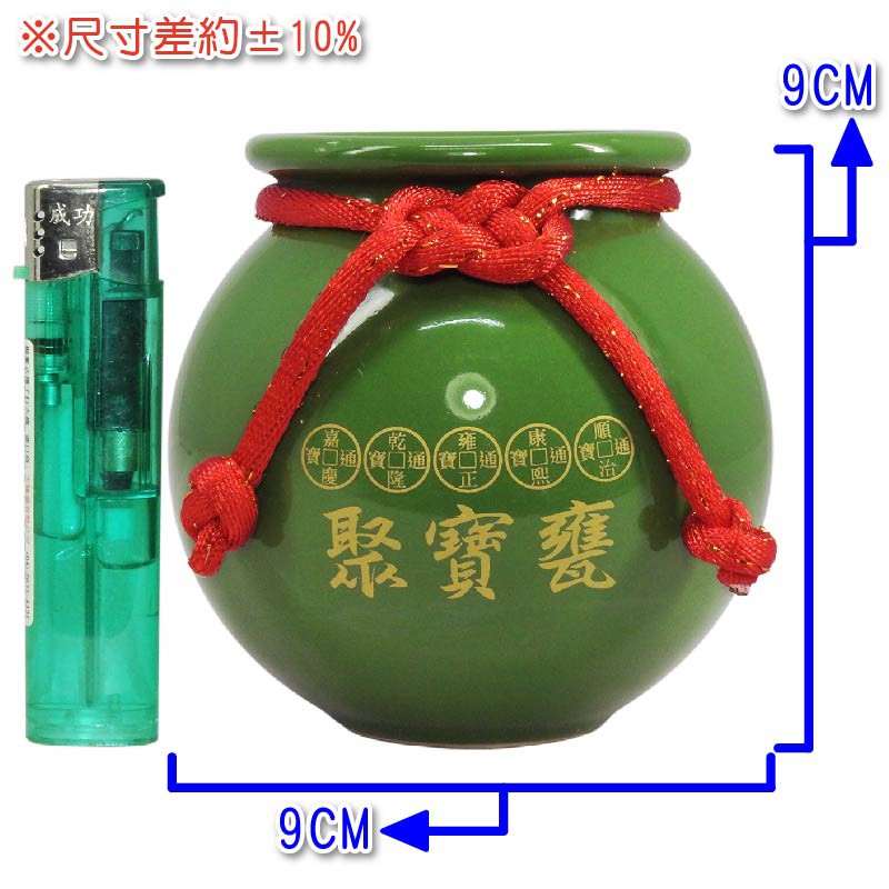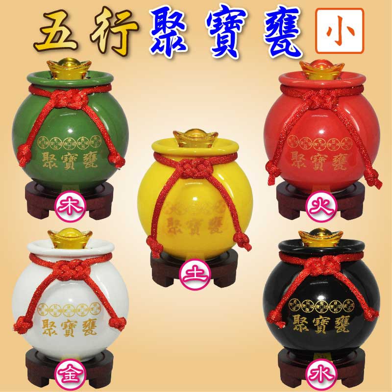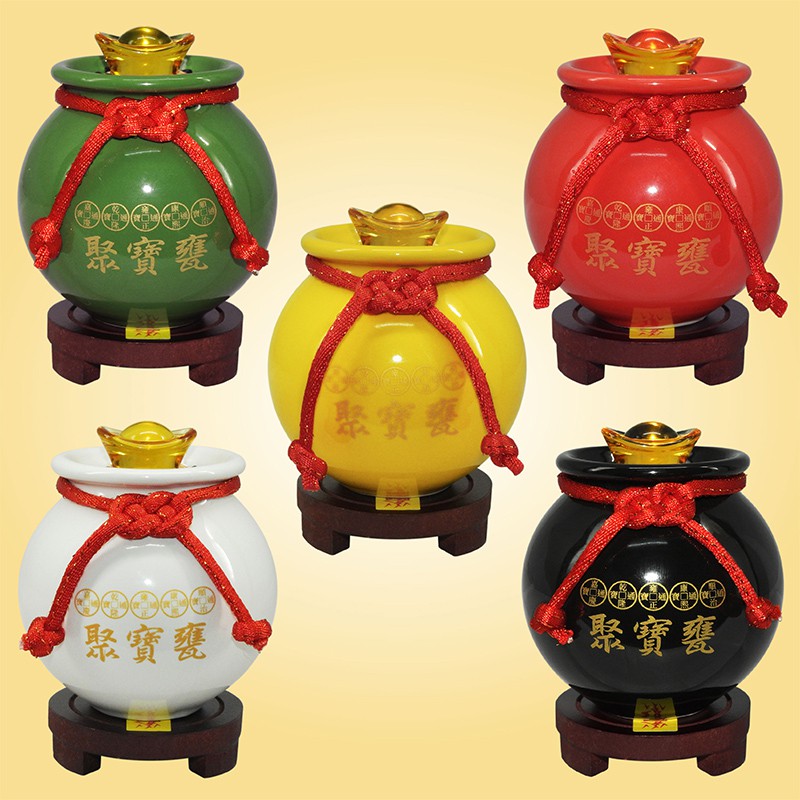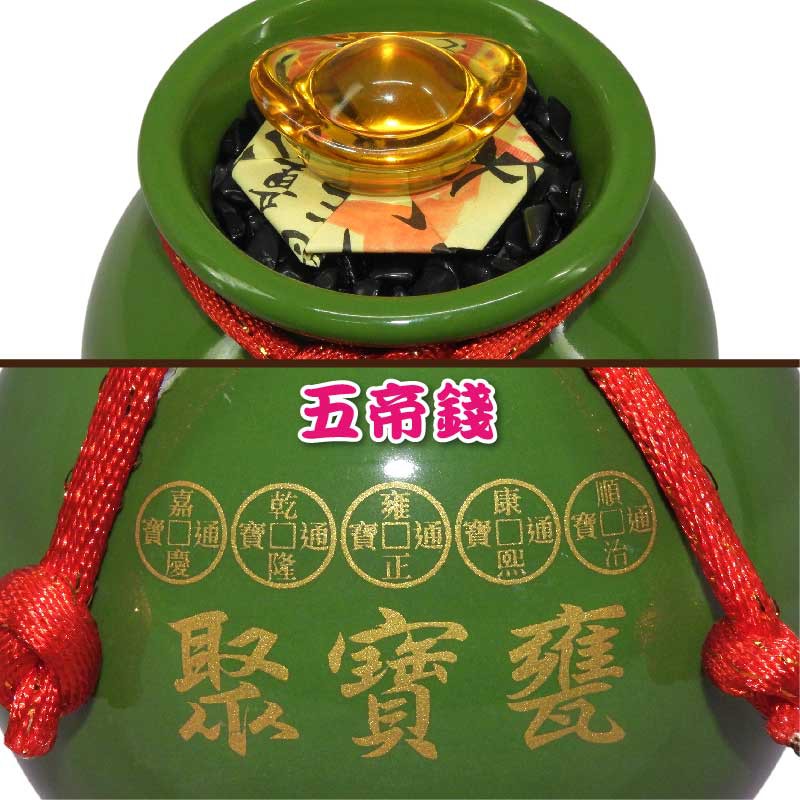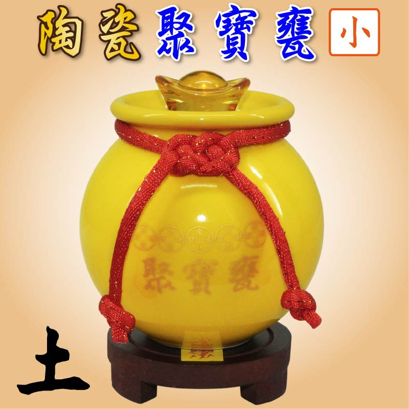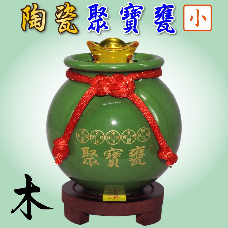 【吉祥開運坊】【聚財聖品五帝錢聚寶盆小型 附木底座 陶瓷聚寶甕 五色可供選擇】開光 擇日