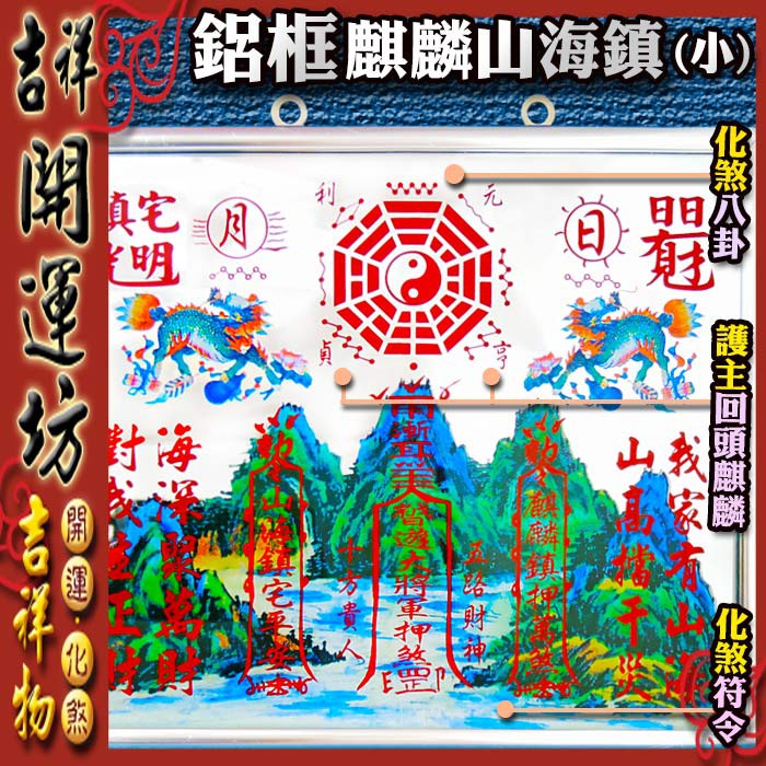 【吉祥開運坊】化煞 招財【耐用鋁框 超強回頭麒麟 化煞山海鎮 小型 鏡面】開光 擇日