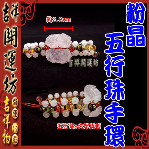 【吉祥開運坊】貔貅系列【五行珠 招財貔貅手鍊 粉水晶貔貅一對】開光擇日