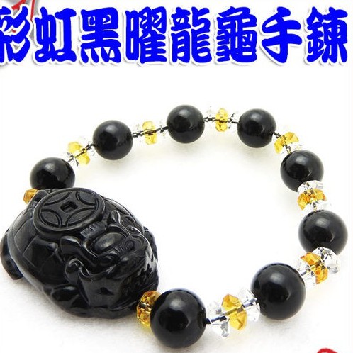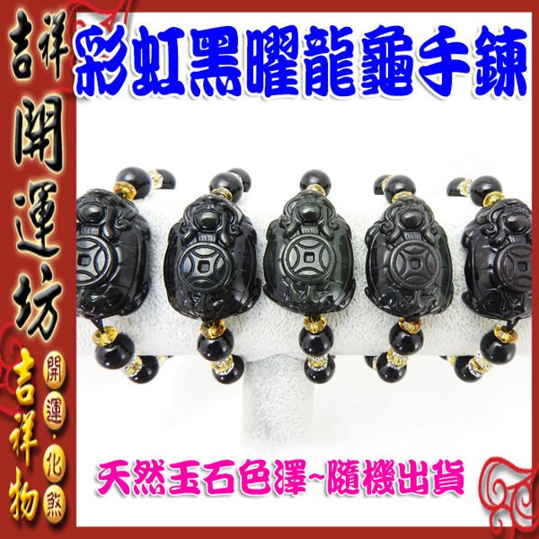 【吉祥開運坊】龍龜系列【招財 防小人 彩虹黑曜石龍龜 背部刻古錢手鍊 彈性 】開光 擇日