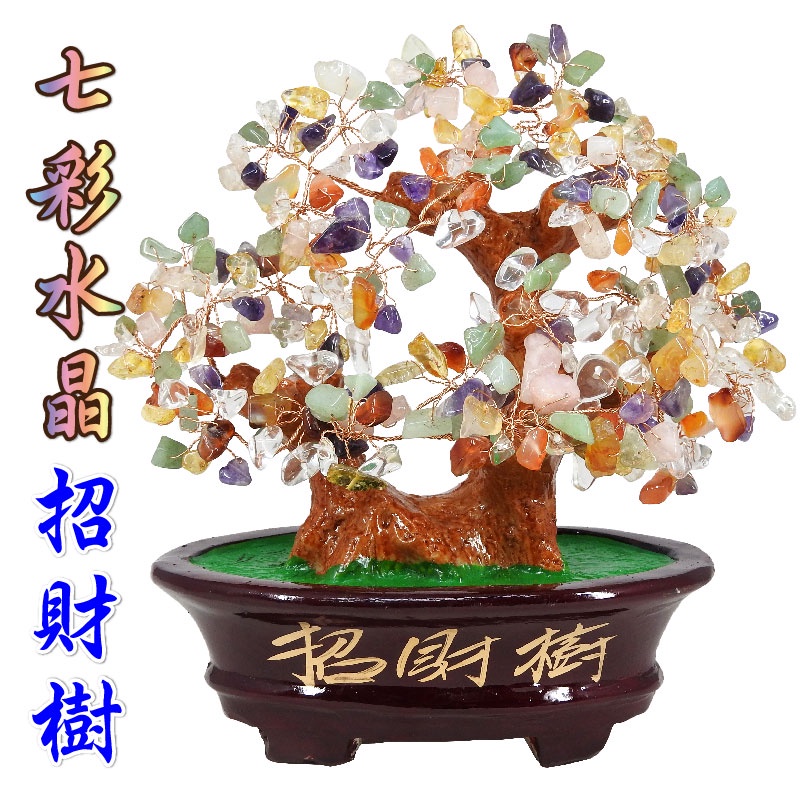 【吉祥開運坊】招財樹系列【招財 財位 天然七彩水晶招財樹 中型 發財樹】 淨化 開光