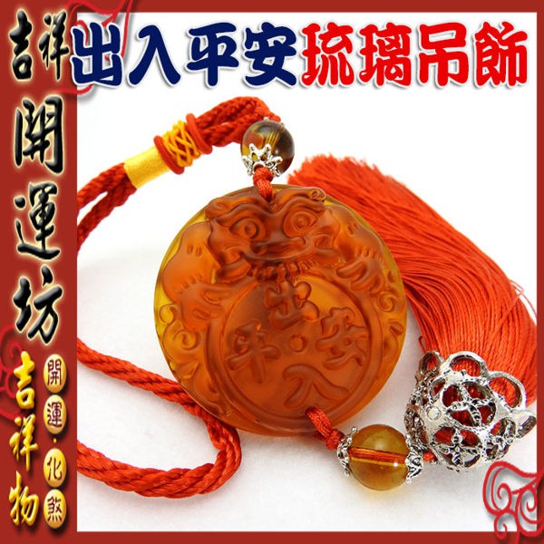 【吉祥開運坊】平安系列【黃琉璃 出入平安 吊飾 】