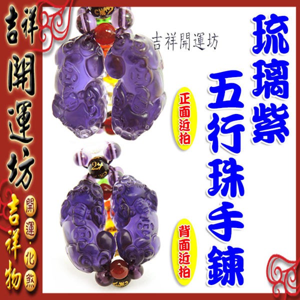 【吉祥開運坊】貔貅系列【五行珠 招財貔貅手鍊 琉璃紫貔貅 】開光 擇日