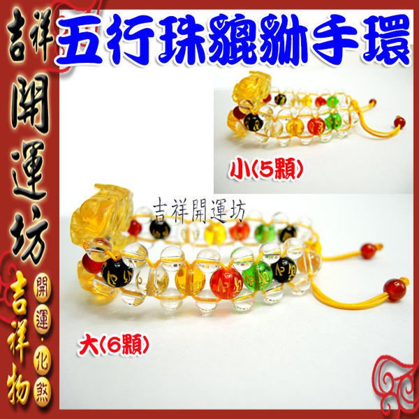 【吉祥開運坊】貔貅系列【五行珠 招財貔貅手鍊 琉璃黃貔貅一對】開光 擇日
