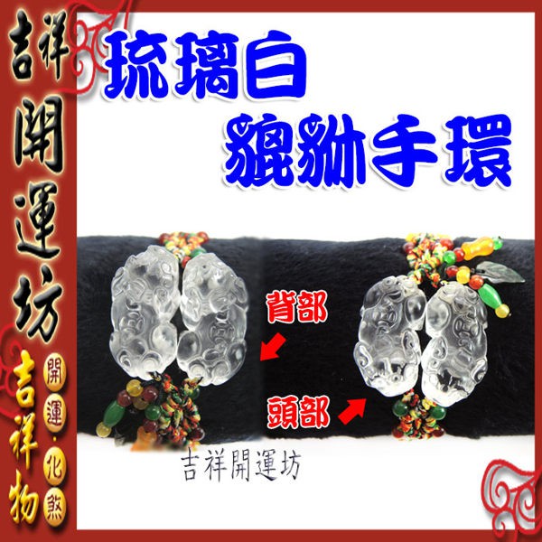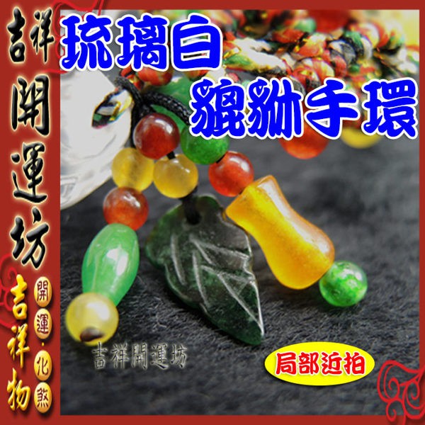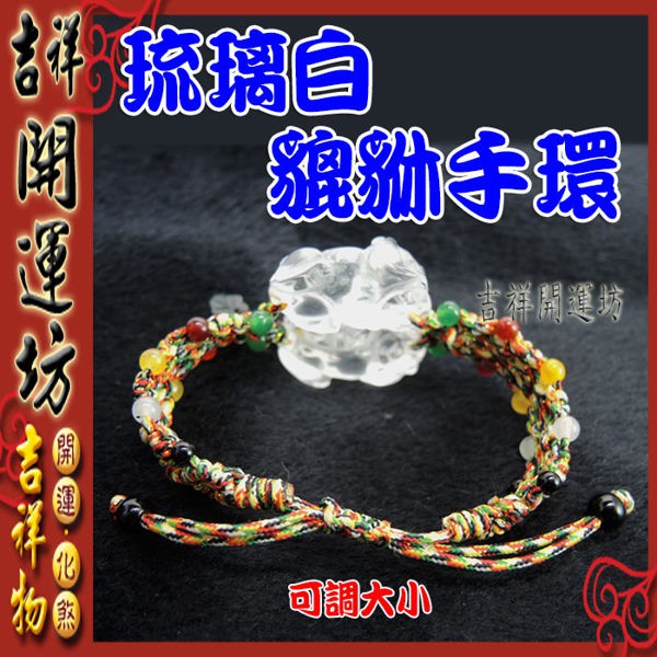 【吉祥開運坊】貔貅系列【五色線 五行珠 招財琉璃白貔貅手鍊 】開光 擇日
