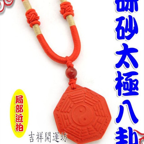 【吉祥開運坊】八卦系列【避邪 保平安 硃砂石太極八卦雕墜子 附繩項鍊】開光加持