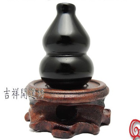 【吉祥開運坊】葫蘆系列【防小人 辟邪 黑曜石葫蘆 附實木底座】開光加持