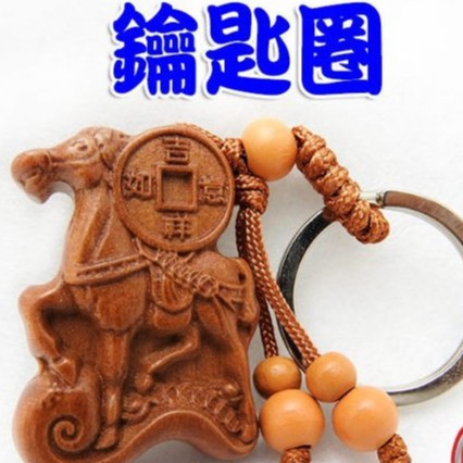 【吉祥開運坊】馬上系列【隨身攜帶 業績馬上有錢 棗木 木雕 馬上有錢鑰匙圈】開光