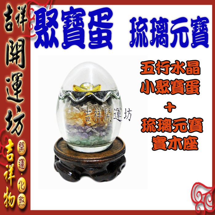 【吉祥開運坊】聚寶蛋系列【五行水晶聚寶蛋 小型 附五色水晶 琉璃元寶】